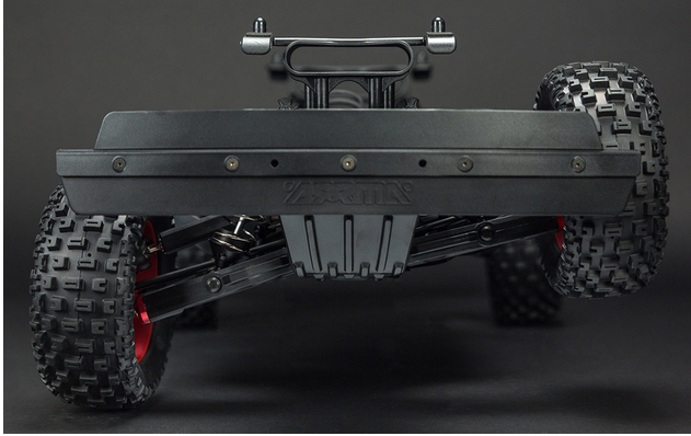 With the rugged construction of the MOJAVE™ 6S BLX 4WD Desert Truck, you'll have the strength needed to survive anything — bashing through dirt, asphalt and grass, in sun, rain or snow. The tough-as-nails anodized aluminum chassis is reinforced with front, rear and center braces for maximum durability. Bumpers and nerf bars supply impact protection on all sides. Thanks to independent suspension with bump-soaking oil-filled shocks, the Desert Truck handles equally well over wicked and well-travelled tracks.