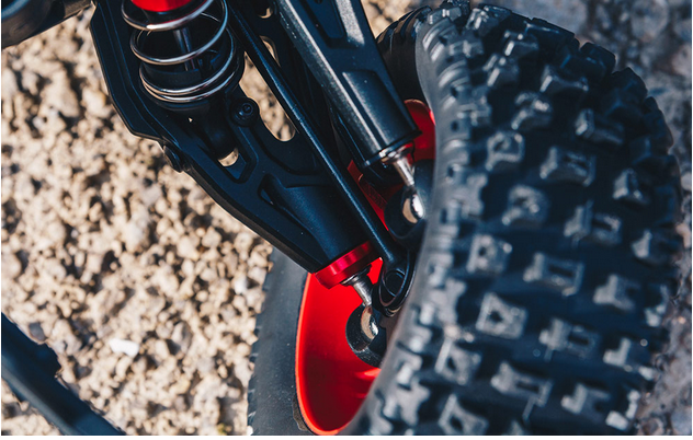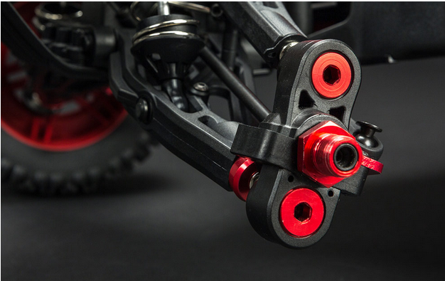 - Heavy-duty suspension arms with red-anodized aluminum strengthening cap
