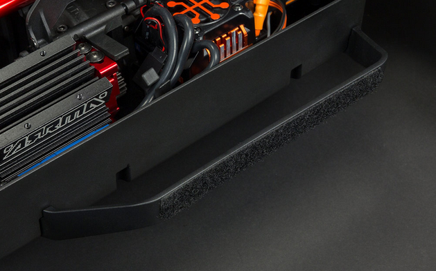 The drivetrain is a masterpiece of heavy-duty design. Featuring steel driveshafts, metal gears, and all-metal diff outdrives, it's ready to take full advantage of the brushless power system's potential. As it comes out of the box, the MOJAVE™ 6S BLX Desert Truck is incredibly fast. Use a 6S LiPo with the optional pinion gear upgrade (gear is included), and the resulting 60+ MPH speed potential is enough to crush any competitor. Keeping your truck in top form is easy. A sliding mount gives you access to the motor in seconds. You can remove the center diff for maintenance by taking out just five bolts.