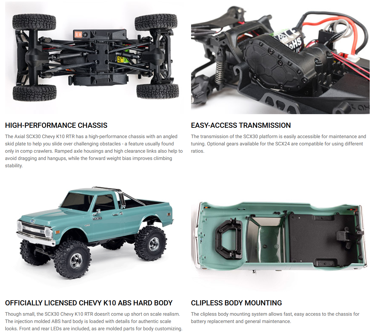 - Axial SCX30 Chevrolet K10 4X4 Rock Crawler RTR: