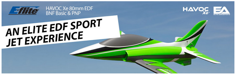 The Elite Aerosports HAVOC series of turbine-powered RC jets has redefined the ultimate sport jet experience. From ultra-slow and smooth low passes and landings to high-speed, high-energy aerobatics and everything in between, their uniquely wide and unmatched performance envelopes make them the sport jets almost everyone dreams of owning and flying someday. The E-flite® HAVOC Xe 80mm EDF makes that dream a reality by offering the same incredible flight experience in an officially-licensed, scaled-down version of the HAVOC X — delivering one of highest-performance and best-handling electric ducted fan powered sport jets EVER!
