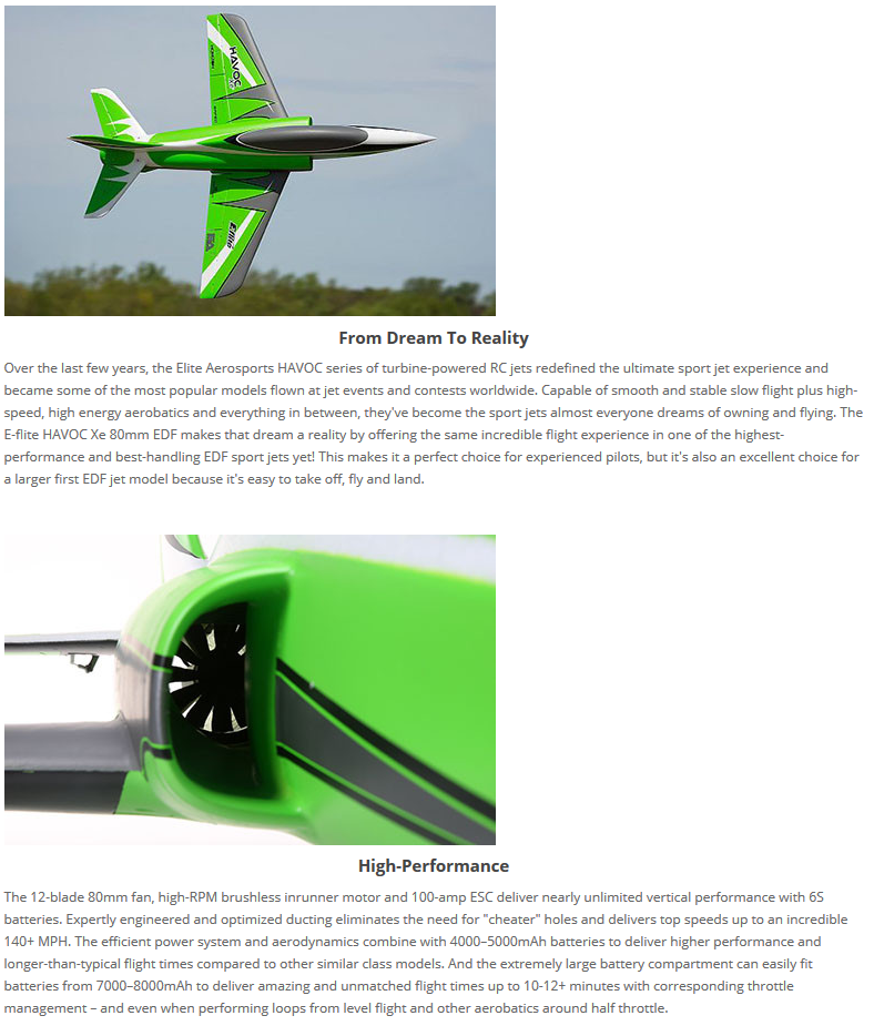 - (1) E-flite HAVOC Xe 80mm EDF with: