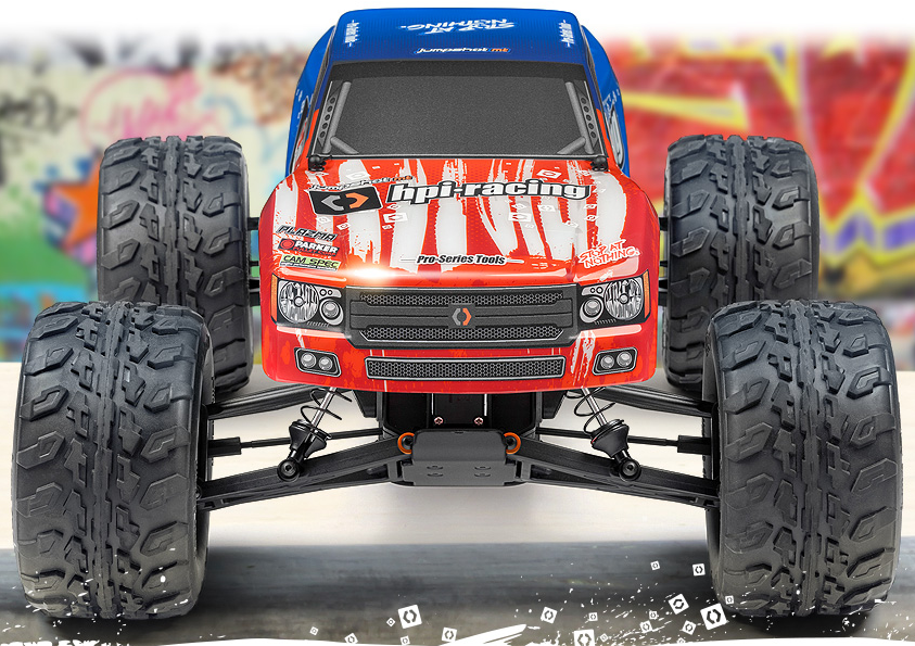 The Jumpshot MT V2 drives and performs fantastic right out of the box, however if you want to, it's easy and quick to adjust plenty of settings, exactly like a real monster truck! Adjustments such as ride height, shock angle and more are merely a turn away with your fingers or a wrench if you want to dive under the hood – HPI make it easy to be your own monster truck mechanic AND driver! More complex adjustments such as camber settings can be done with option parts you can get from your RC hobby shop.