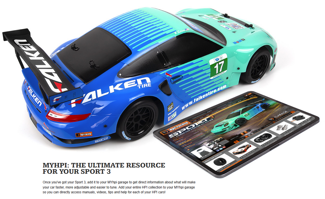 HPI Racing is proud to unveil the latest addition to the Sport 3 lineup: the unmistakable #17 Porsche 911 GT3 RSR, as driven by Bryan Sellers, Wolf Henzler, and Martin Ragginger for the legendary Falken Tire racing team—one of the top contenders in the fiercely competitive GT class.