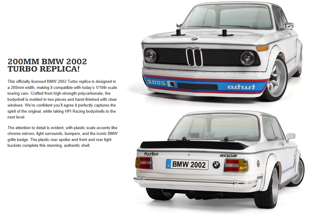 HPI-Racing is proud to introduce latest addition to the Sport 3 line-up: a stunning replica bodyshell of the iconic BMW 2002 Turbo! This legendary car from the 1970s is not just a symbol of automotive history, but a perfect fusion of style and performance, now brought to life in 1/10th scale!