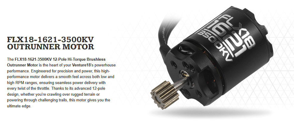 Engineered with a fully metal drivetrain and a 2-speed transmission, the Venture18 provides the durability and versatility needed for challenging terrains. Its brushed 180 50T motor and ESC offer reliable power, allowing precise control and smooth operation over obstacles. This drivetrain design ensures consistent performance for both beginners and experienced drivers.