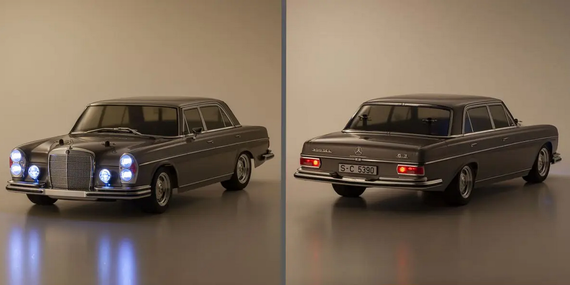 The 300 SEL 6.3, a symbol of Mercedes-Benz's classic cars, has been recreated as an electric R/C car!
