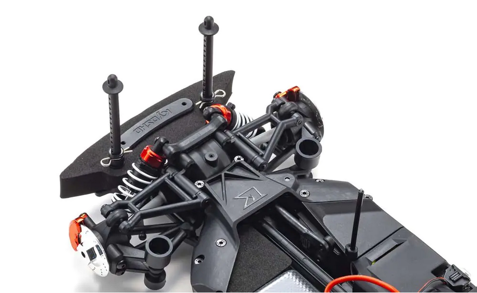 Completely new chassis realizes low center of gravity with its simple, functional design. Featuring an integrated gearbox that optimizes torsional rigidity of the main chassis, the nylon material reduces weight while improving impact resistance. Each key component has been reinforced in this simple design without upper deck.