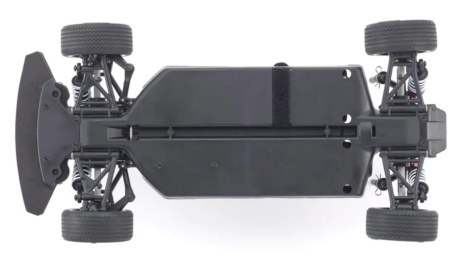 Completely new chassis realizes low center of gravity with its simple, functional design. Featuring an integrated gearbox that optimizes torsional rigidity of the main chassis, the nylon material reduces weight while improving impact resistance. Each key component has been reinforced in this simple design without upper deck.