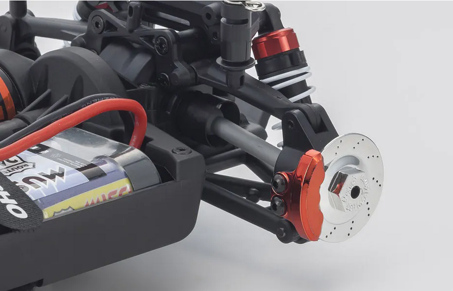 For the pure enjoyment of R/C car driving, the combination of a beautifully reproduced car body with the FAZER series chassis can’t be beaten. Kyosho has taken its standard touring car chassis and given it a full model makeover that has evolved performance to a new level. A simplified design with fewer parts has improved maintenance efficiency and reduced weight while core strength and rigidity has been increased through new materials and ribbing and stiffeners on front and rear. In addition, the symmetrical chassis design synergizes excellent front-rear balance through the suspension with responsive control, irrespective of power source. Featuring slipper clutch, front & rear gear differentials, oil shocks and full ball bearing specs, the high durability and impact resistance allows drivers to unleash the full potential of the chassis. Brake disc wheel hubs with two different offsets (0mm, +5mm) provide compatibility with 190mm and 200mm width body styles and allows the wheelbase to be adjusted to 260mm by replacing some parts (sold separately) for compatibility with other 1/10 scale body styles, in addition the body included. The Readyset package comes fully assembled and includes everything except batteries for the transmitter.