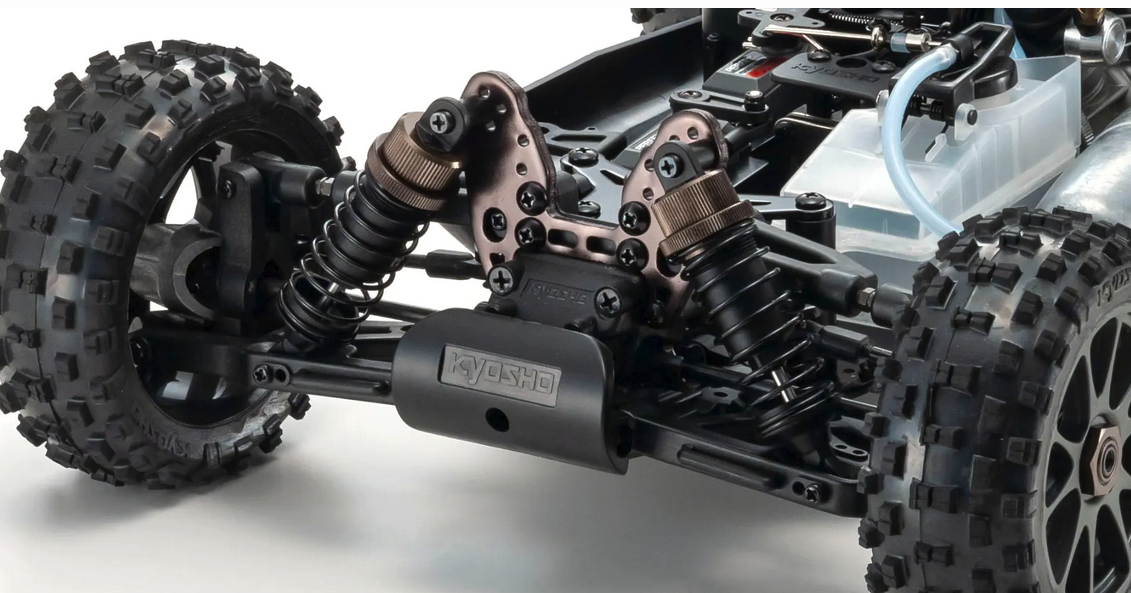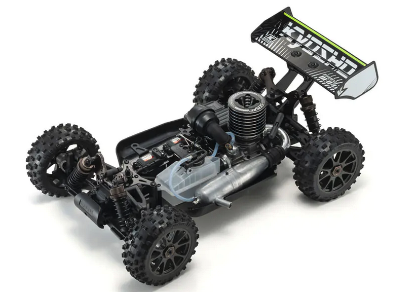 Kyosho’s 1/8 scale Inferno GP buggy series is recognized worldwide as a top-class racing model. The Inferno NEO 4.0, based on the Inferno, comes as a Readyset with a pre-assembled chassis, installed engine, R/C system, and painted body. It’s ready to race after inserting batteries into the included pistol-grip transmitter and chassis and filling the fuel tank. For beginners, the challenging engine break-in process is simplified with a break-in ring that eliminates needle adjustments. The smooth-starting engine makes it easy for those new to GP models. Sharing its body with the electric Inferno NEO 4.0 VE, it comes in two color options. High-torque steering and throttle servos from the previous model provide reliable control, even in demanding off-road conditions. For those new to 1/8 scale GP buggies or experienced R/C enthusiasts, the Inferno NEO 4.0 delivers thrilling large-scale buggy performance.