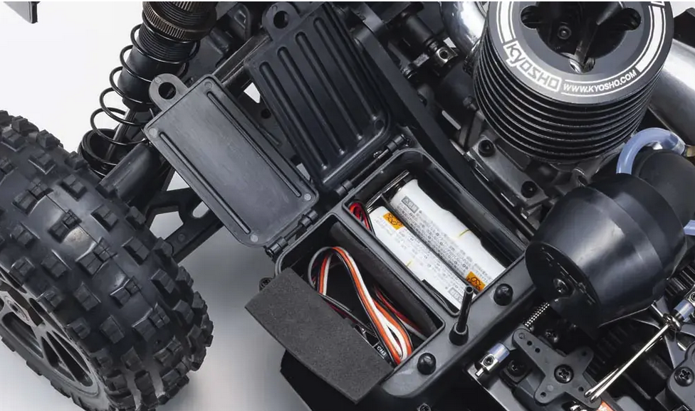 Special radio box houses the receiver to protect it from dirt and dust. Battery holder for the receiver and servos is also secured inside the same box.