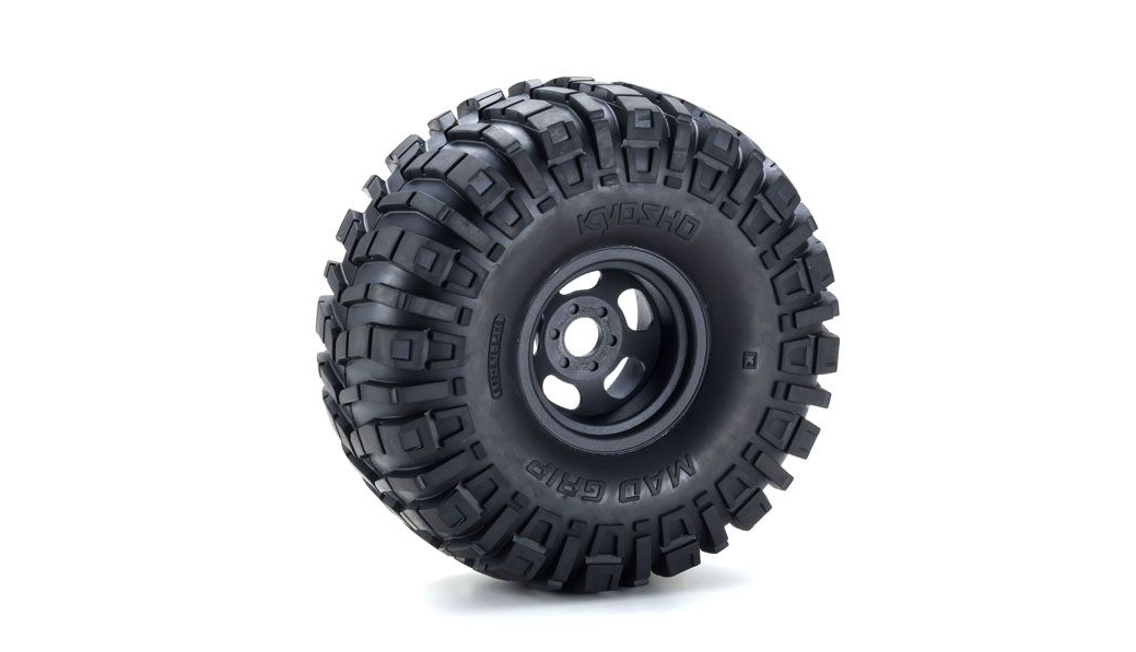 Large φ155mm×70.5mm tires with block pattern excel on any surface or situation. Black wheels add a sense of scale and style.