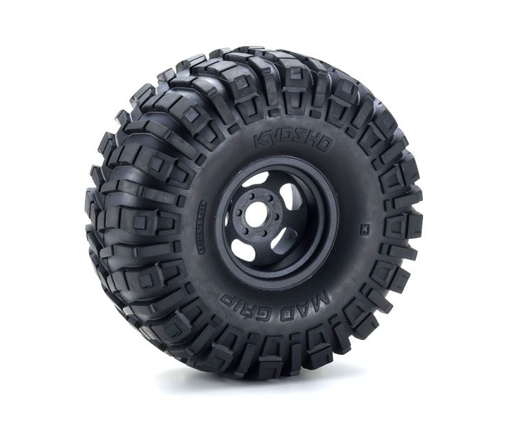 Large φ155mm×70.5mm tires with block pattern excel on any surface or situation. Black wheels add a sense of scale and style.
