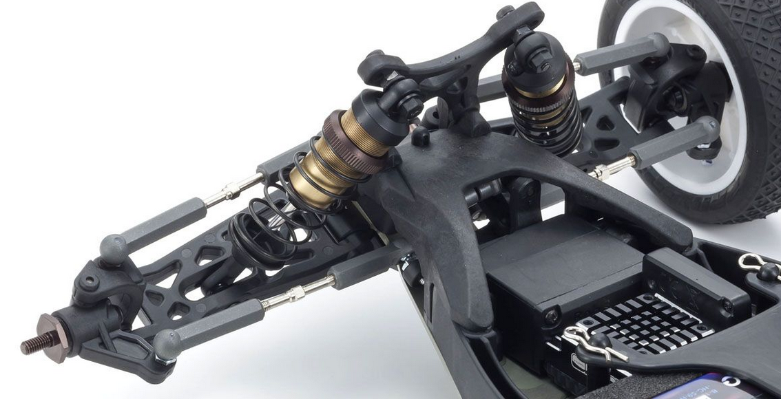 Geometry optimized for stock motor class performance. A bush is used to move the inner suspension shaft to the chassis center and shorten the arm. Width is compatible with thicker wheel hubs.