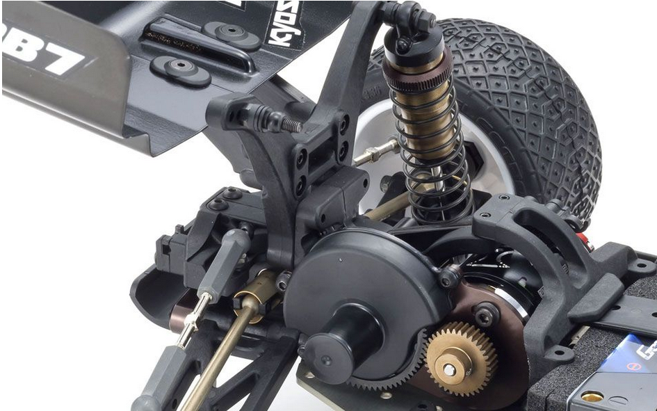 RB7’s exceptional front end geometry delivers superior cornering performance with stock motors.