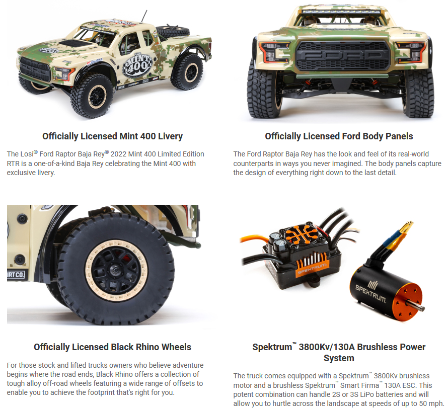 Losi 1/10 Mint 400 Ford Raptor Baja Rey Limited Edition 4WD RTR w/Spektrum Smart Battery+Charger