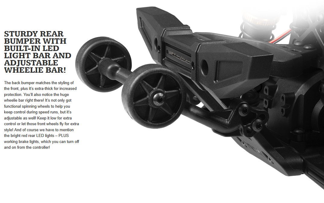 - Front & Rear Lights with functional Brake Light and Remote On/Off from Transmitter