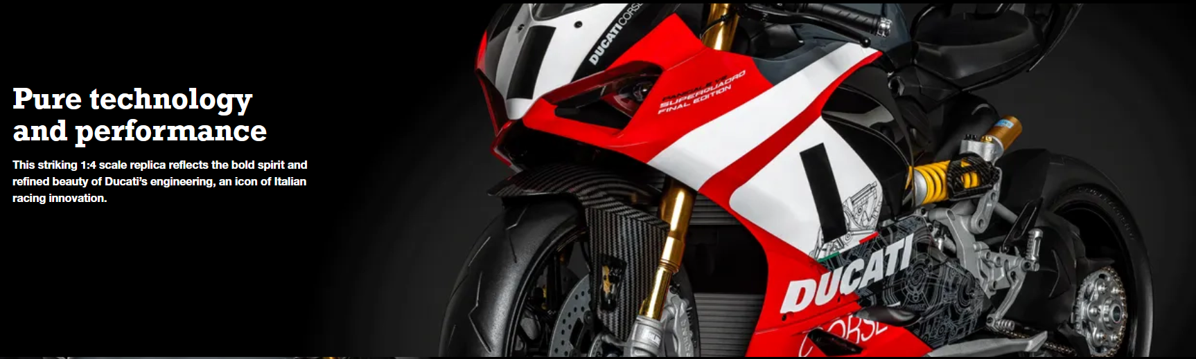 With production of the real Panigale V2 Superquadro Final Edition limited to just 555 units, the Panigale V2 Superquadro Final Edition is not simply a collector’s item, but a respectful and loving tribute to the Ducati Superquadro twin engine and its unique history. You can build the extraordinary and add this 1:4 masterpiece to your Pocher collection, and honour one of the most iconic Italian motorcycles of the modern era.