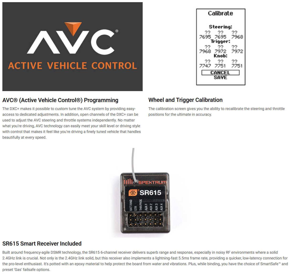 The DXC+ includes new upgrades and features that makes it the ideal upgrade transmitter for RTR vehicles. Upgrades include Dual Protocol, DSMR+, 12 proportional channels and USB for easy firmware updates and compatibility with the VRC Racing Simulator.