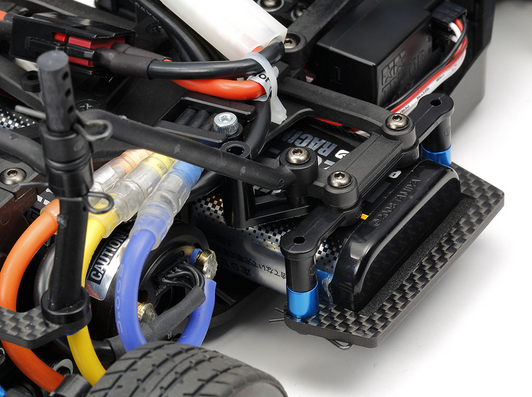 - Includes carbon fiber components such as battery holders and body mount base (TAM54908).