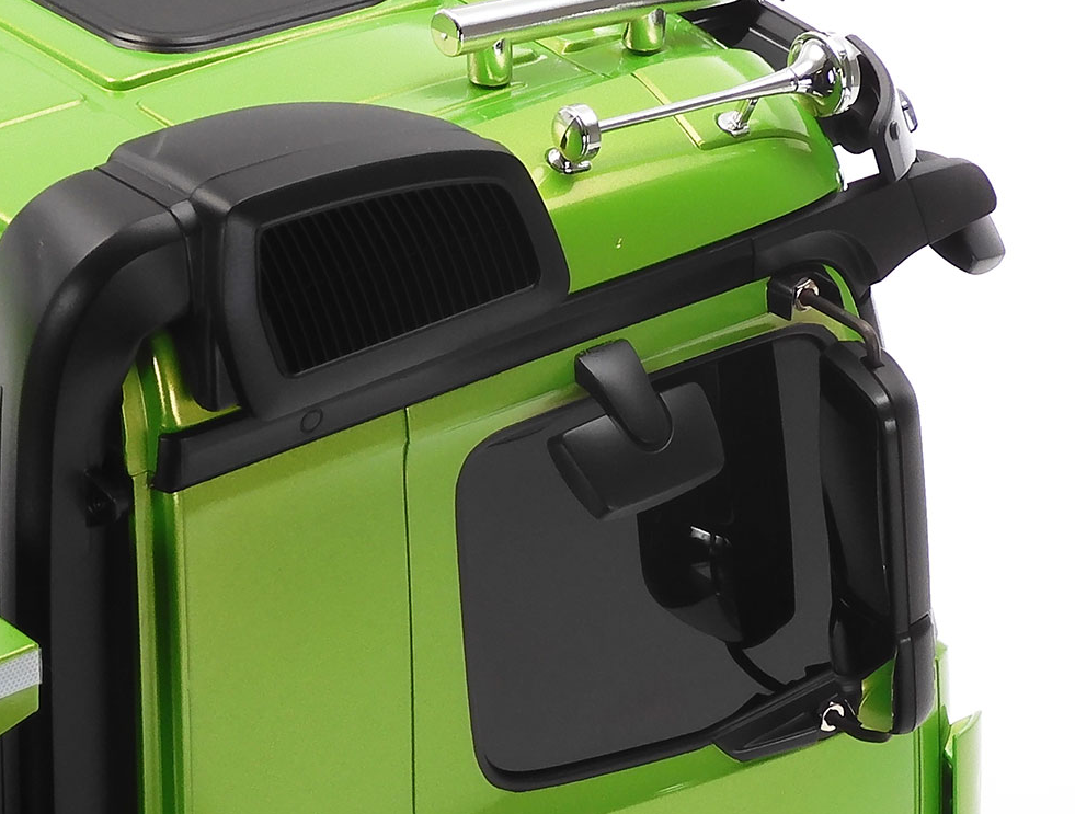 It features a highly detailed body and cab pre-painted in Candy Lime Green for your convenience, and given a lustrous urethane topcoat. Air tanks and other parts are pre-painted in semi-gloss black.