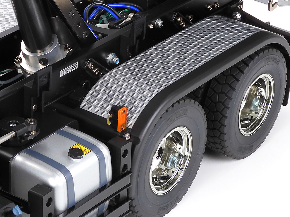 - The Tamiya 4-axle chassis has a tough ladder frame with aluminum side channels and plastic cross members