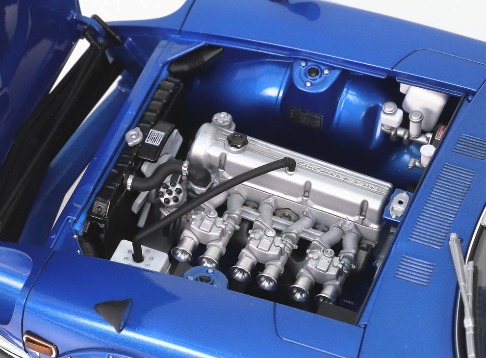 - Its 2,393cc inline-six SOHC engine and triple carburetors are rendered realistically. Air funnels are aluminum parts.