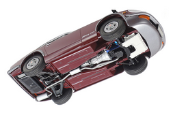 - 2.4-liter inline-6 engine has depictions of the twin carburetors, oil pan and transmission, and the hood is openable to show the engine even after assembly.