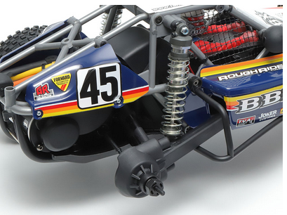 This R/C model assembly kit is inspired by single-seater racing buggies popular in America. The slim chassis utilizes a lengthwise battery pack and rear-mounted, transverse motor, and ensures optimum weight balance and precise rigidity. The 4-wheel independent suspension uses front double wishbone and rear trailing arm setups to allow dynamic off-road performance. It employs safety nets, a roll cage equipped with light pods, six-piece body cowling featuring a long nose, and aluminum dampers.