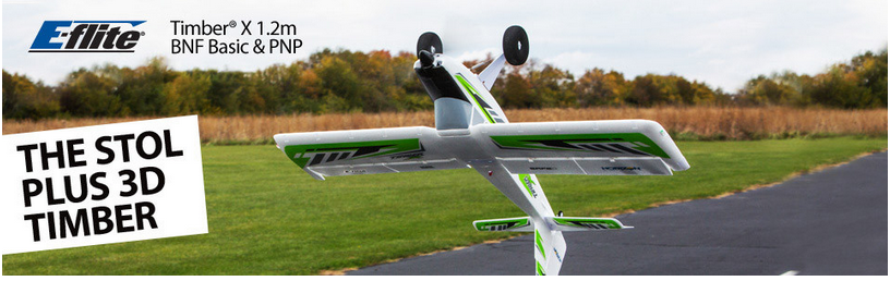 The E-flite Timber X 1.2m unleashes a new era of STOL plus 3D aerobatic capability. Based on the extremely popular Timber 1.5m model but featuring a new wing design, oversized control surfaces plus a 3S and 4S compatible power system, it offers an even wider flight envelope to deliver a truly “mild to wild” experience. Hollow-core EPO construction with composite reinforcement results in a lightweight yet strong airframe that's capable of handling extreme aerobatic maneuvers while keeping the wing loading low for impressive Short Takeoff and Landing (STOL) and slow flight performance. It's also equipped with high-torque, metal-geared servos plus the shock-absorbing landing gear of the original model so you can fly as aggressively as you want from almost any surface. You can even install the included leading edge slats for improved slow flight performance, or the optional floats (EFL5261, sold separately) so you can fly from water. Add in the LED landing, navigation and strobe lights plus many of the other popular features of the original, and the Timber X is a model almost every pilot can appreciate and enjoy!