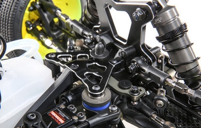 Machined 7075-T6 aluminum shock towers with updated camber link holes previously included with the 8XE.