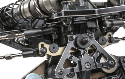 The 8IGHT-X next generation suspension geometry has been completely revamped making a car that is fast, nimble, and easy to drive. This includes a myriad of updates including longer front and rear arms, wider front pivot with less scrub radius, narrower rear pivot, and updated hub offset.